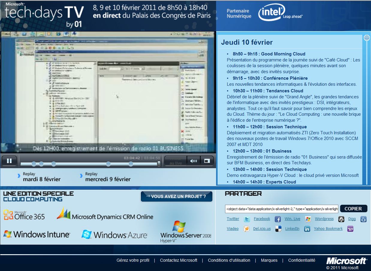 WebTV TechDays Publié le 10 février 2011 par Eric Mijonnet Poster un commentaire Précédent Suivant Retour 5ème édition des Tech Days Microsoft : un bon millésime !