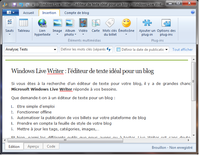 Windows Live Writer : l’éditeur de texte idéal pour un blog