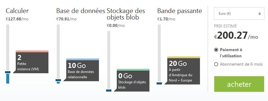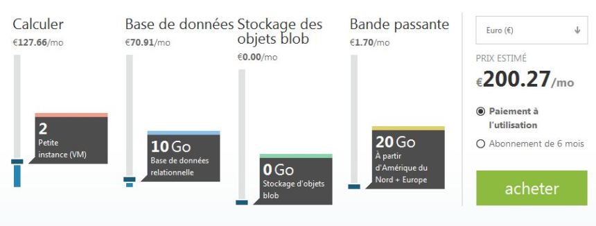 Vous le savez sans doute, Microsoft a modifié les tarifs de sa plateforme Azure il y a une dizaine de jours, en revoyant (légèrement) à la baisse quelques chiffres, en particulier le coût de stockage. Si, comme nous, vous trouvez qu’il faut parfois un bac +10 pour comprendre quelque chose à cette facturation (entre les instances, les blobs, la bande passante, le cdn, les transactions, etc…), rassurez vous la société vient de mettre à jour sa calculatrice. Bonne nouvelle elle est très bien faite. Aucun mal maintenant (ou presque) à comparer les tarifs avec les autres offres du marché 🙂