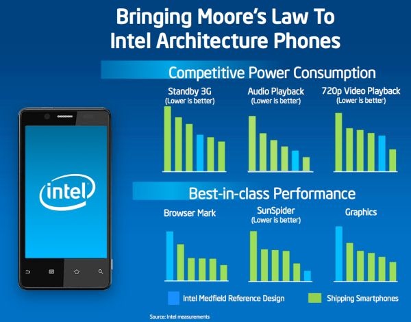 Les capacités du nouveau processeur mobile d’Intel « Medfield » pourrait-être le beau cadeau de Noel d’Intel. La firme que certains ont enterré un peu vite face aux différents processeurs ARM de Samsung, Apple, Nvidia ou Qualcomm vient de réagir si l’on en croit le site vr-zone qui a pu tester en avant première le nouveau processeur faible consommation gravé en 32 nm d’Intel.