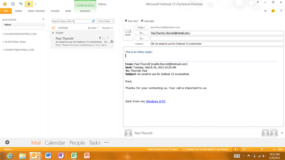 - Il est maintenant possible de répondre à un message en l’éditant directement dans le volet de Prévisualisation à droite (donc au final celà ne sera plus uniquement une zone de « Prévisualisation !), moins de fenêtre qui s’ouvrent au final, et un format plus adapté aux tablettes là encore.