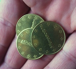 Nous avons (en photo ci-contre) eu accès en exclusivité aux premières pieces (en or) frappées par Microsoft. Elles pèsent 7,5 gr et devraient être acquises pour 400 USD environ.
