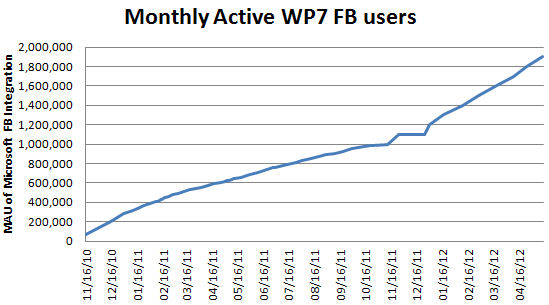 D’où vient ce chiffre alors que Microsoft refuse de communiquer sur des chiffres de vente aux utilisateurs finaux (Sell Out) ? C’est une corrélation entre les utilisateurs de l’application Facebook (utilisée sur 18% des téléphones en moyenne d’après leur constatation) : 2 millions d’utilisateurs de Facebook correspondrait donc à 12 millions de machines Windows Phone… Même si ce calcul est sans doute contestable, c’est une indication qui a le mérite d’exister et de vérifier le « pic » des ventes dues à l’arrivée de Nokia sur le marché.