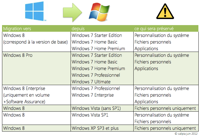 Pas de grosses surprises, pour ce qui est des mises à jours depuis Windows 7 qui seront largement supportées, plus délicat en revanche pour Vista et XP, ce qui n’est pas une grosse surprise non plus…