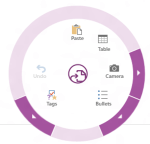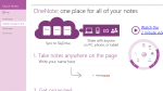 • Seule une version de OneNote 2013, sous l’interface Metro, a été rendue disponible par Microsoft. Elle est accessible en version Preview depuis le Windows Store, sous le nom OneNote MX. C’est cette version qui a été montrée lors de l’annonce du 17 juillet, avec la « roue » qui s’affiche pour accèder aux menus contextuels (cliquez sur l’image pour une vue pleine écran de OneNote MX).