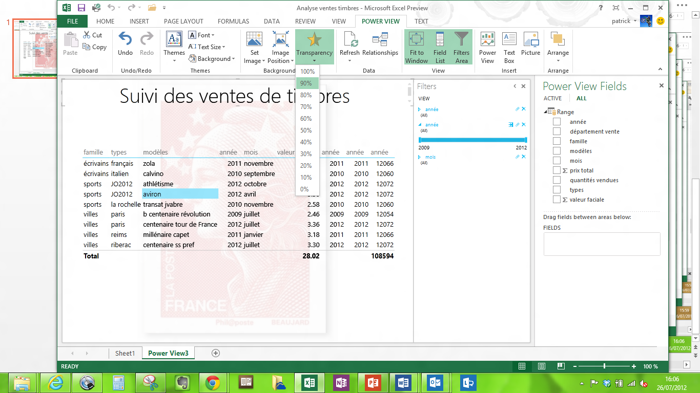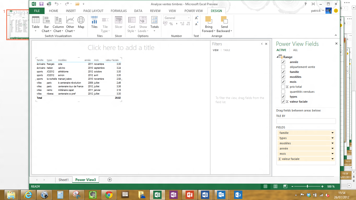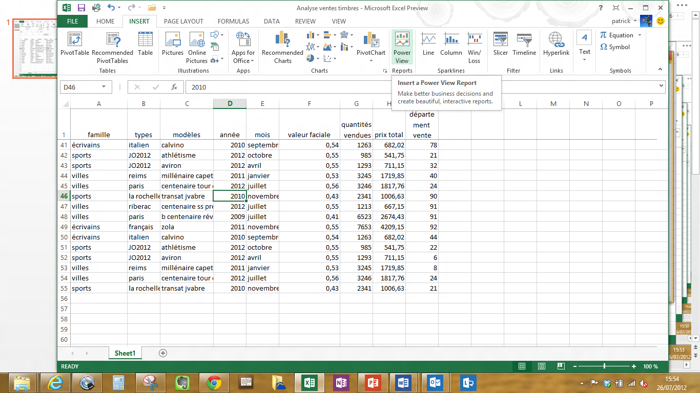 La fonction PowerView permet à l’utilisateur final de construire des rapports dynamiques sur la base de fichiers Excel, tableaux croisés dynamiques, tables PowerPivot … Cette fonction PowerView est un peu aux rapports ce que la fonction PowerPivot (tableau croisé dynamique) est aux tableaux de chiffres. L’utilisateur peut créer des rapports intégrant des tableaux de chiffres, des graphiques, des titres, du texte explicatif, avec une dimension temporelle. Ces rapports sont liés aux données et donc dynamiques.