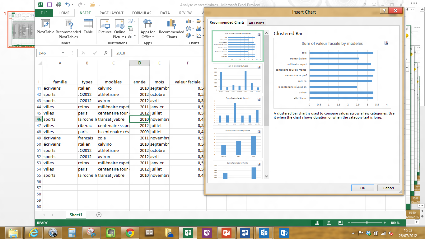 A noter également l’arrivée d’une fonction de « Recommended Charts » qui propose à l’utilisateur un ensemble de graphiques adaptés à la série de chiffres sur laquelle il travaille. Cette proposition ne s’impose pas bien entendu à l’utilisateur qui peut choisir le type de graphiques qui lui convient mieux.