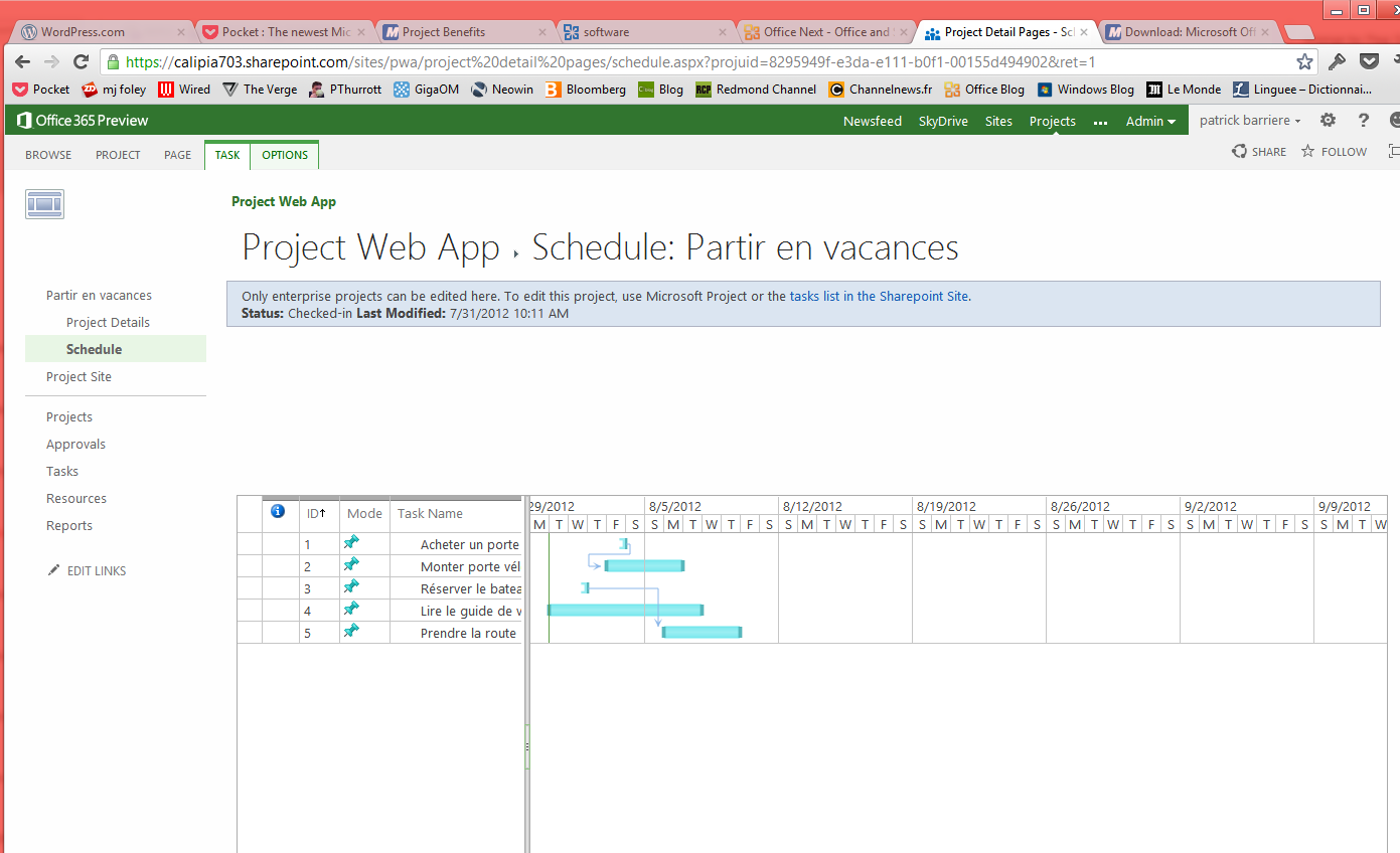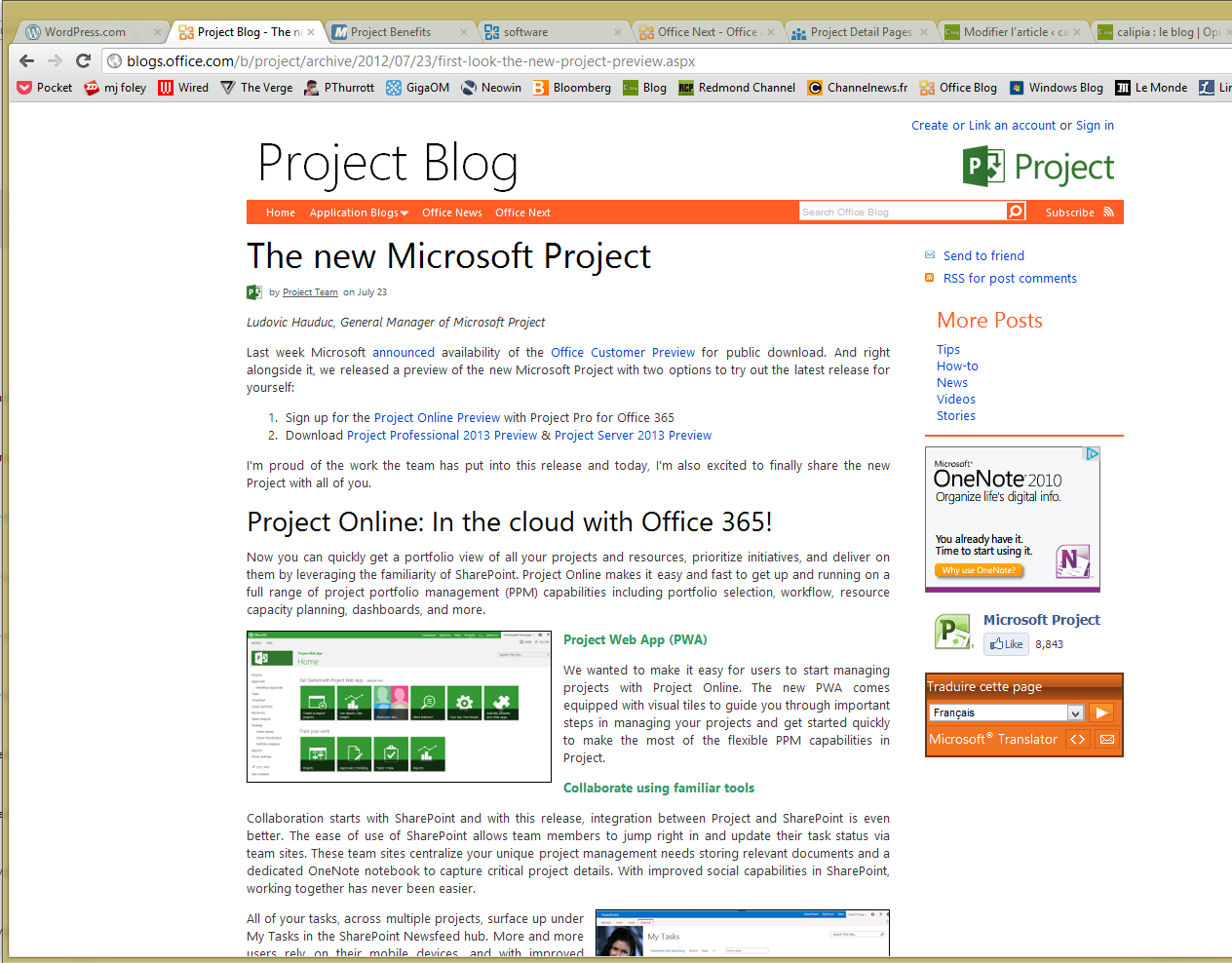 Depuis l’annonce du 17 juillet dernier, de la prochaine version d’Office, et la mise à disposition de la Consumer Preview de 3 offres Office 365, Microsoft ne baisse pas le rythme et vient d’annoncer dans son blog, l’arrivée de 2 nouveautés concernant la prochaine version de Microsoft Project :