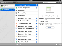 Enfin, gratuit pour les clients de l’offre Google Apps for Business. Une fois installée l’application depuis l’AppStore, il faut en effet se connecter avec ses credentials Google Apps for Business. Pour ceux qui n’ont pas la chance de faire partie des heureux utilisateurs de la suite de Google, il sera possible d’acquérir l’application payant (6,99€) QuickOffice Pro HD.