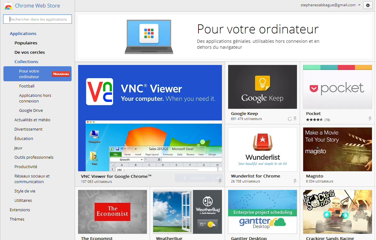 L’accès à ces applications se fait tout naturellement depuis le Chrome Store du navigateur qui dispose d’une nouvelle rubrique pour l’occasion » les applications poste de travail ».