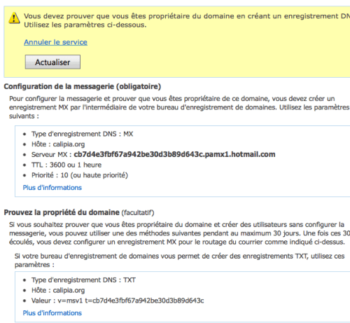 La situation est la suivante : vous disposez de votre nom de domaine (par exemple ici calipia.org) et vous souhaitez avoir un service de messagerie performant, fonctionnant avec votre dernier Smartphone mais aussi avec Outlook et accessible également via OWA (Outlook Web Access). Tout cela bien sur gratuitement pour un maximum de 50 utilisateurs…