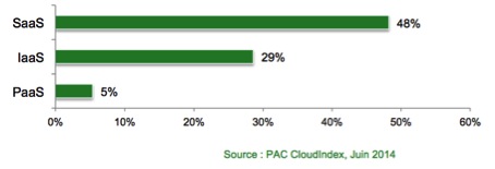 Mais le plus important est que le Cloud est de plus en plus considéré comme stratégique pour 30% des répondants et que l’adoption porte principalement sur le SaaS (Software as a Service) devant l’IaaS (Infrastructure) et PaaS (Plateforme). De plus 77% d’entre eux jugent qu’au moins une de leurs applications SaaS est stratégique pour leur business.