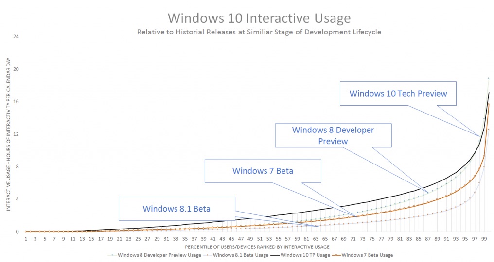 Windows 10 est la version de l’OS qui jouit du plus fort taux d’adoption pendant la période des préversions, devant Windows 8 et Windows 7. Attention tout de même, les testeurs de Windows 8 / 8.1 ont été très nombreux, ce qui ne fut pas forcément une garantie de succès pour cette version de l’OS.