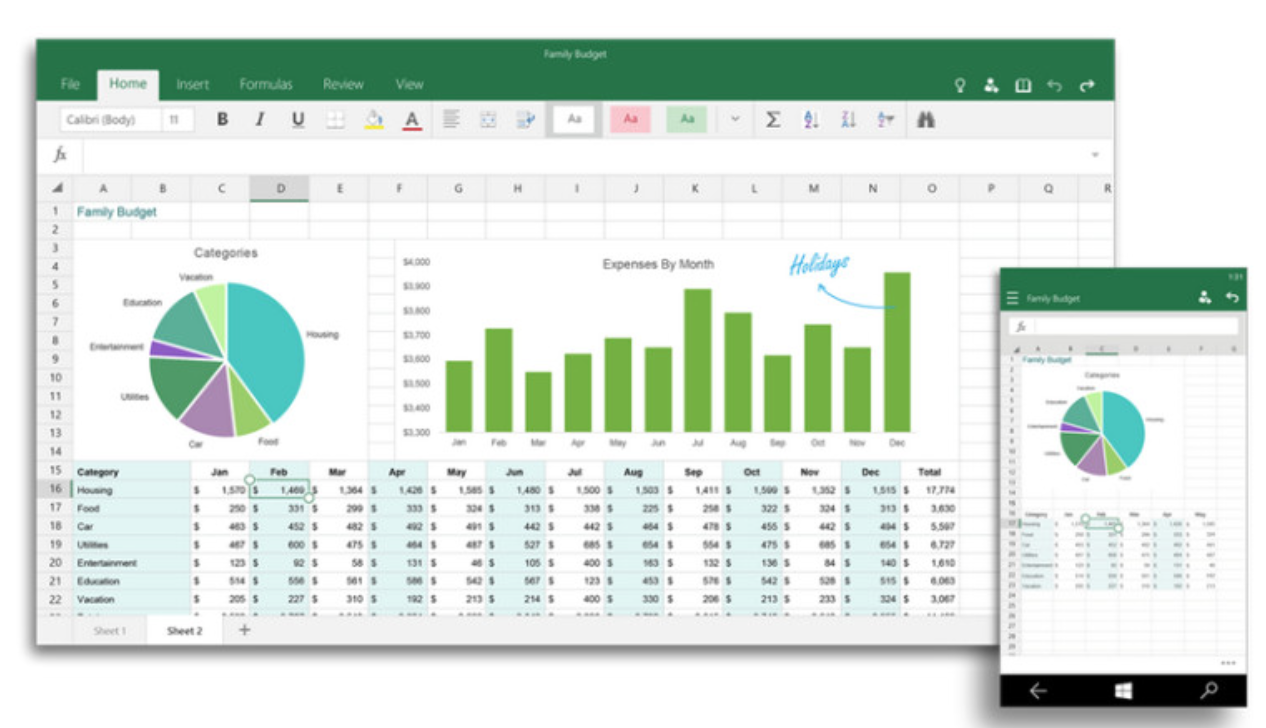 Applications Office tactiles pour Windows 10 en beta