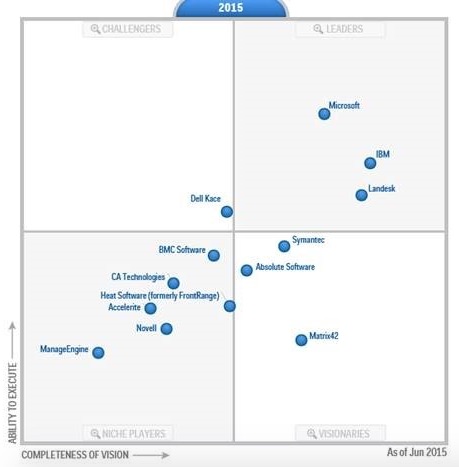 Gartner place pour la onzième année consécutive Microsoft comme le Leader des outils d’administration des postes clients avec System Center Configuration Manager comme le montre le nouveau quadrant magique publié en juin 2015.