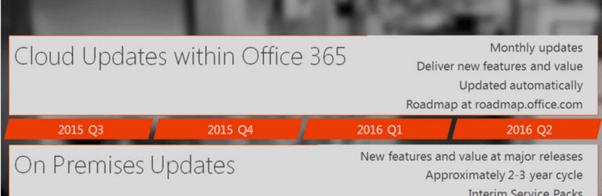 Dernière brique des serveurs de productivité à ne pas être encore disponible en version 2016, SharePoint vient de franchir un grand pas dans cette direction avec la mise à disposition hier par Microsoft de la Release Candidate (RC), qui est quasi complète fonctionnellement. Cette RC vient donc après la beta 2 publiée en novembre dernier, et elle offre selon Microsoft la quasi totalité des fonctionnalités de la prochaine version on premise de SharePoint Server, avant une disponibilité commerciale en avril prochain. A noter que conformément aux règles de développement établies par Microsoft, une bonne partie de fonctionnalités données comme nouvelle pour cette version on premise, sont déjà disponibles dans le service SharePoint Online (voir l’image au dessus).