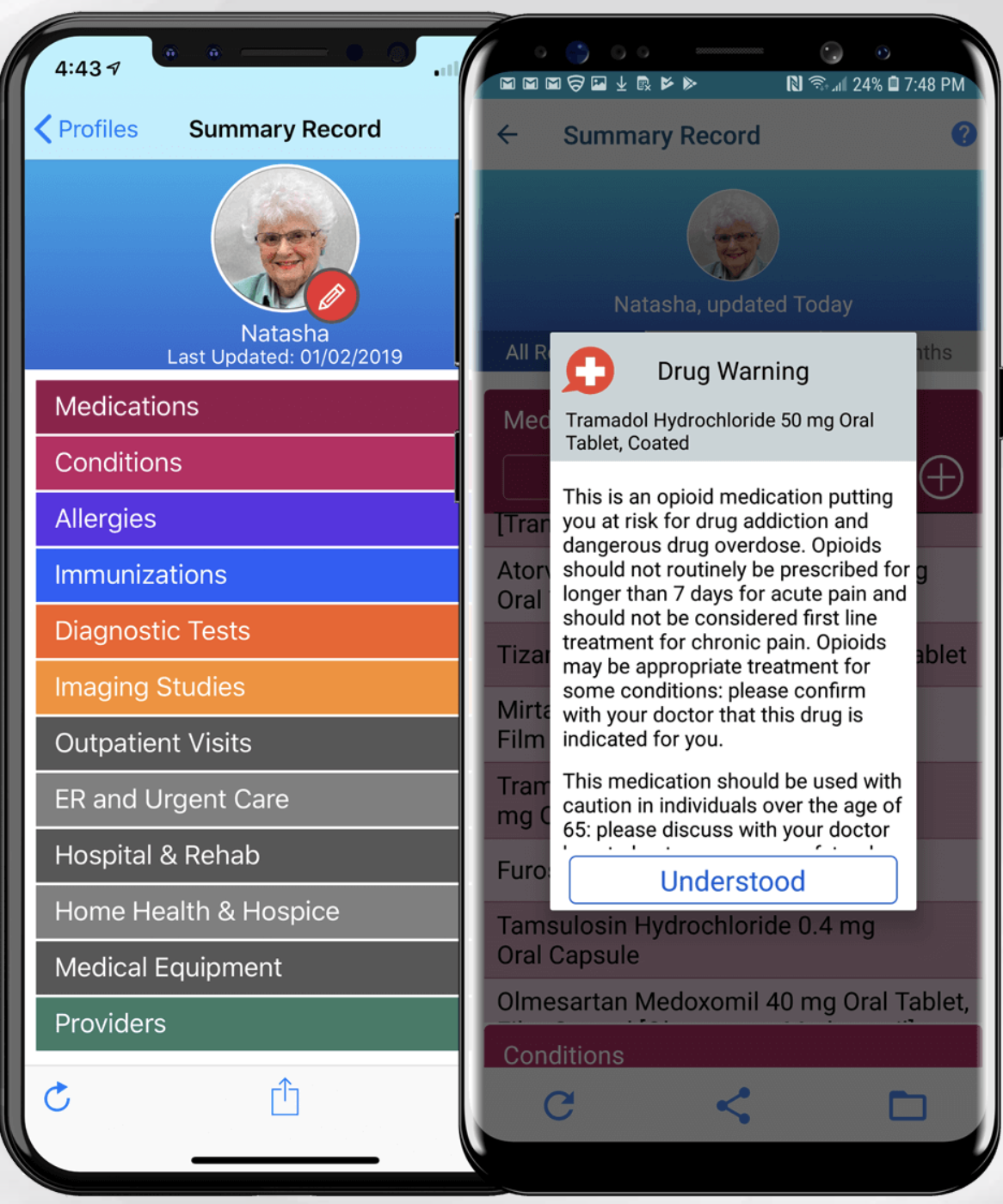 Avec iBlueButton, les patients et les professionnels de santé disposent d’un espace de partage et d’information autour du parcours de santé des patients, les résultats d’imagerie médicales, les compte-rendus d’hospitalisation, mais aussi les allergies connues, les traitements en cours… Cette appli permettra une meilleure info des professionnels de santé, mais également des patients eux-mêmes sur leurs pathologies et les prescriptions qui leur sont faites. Quand on connait les dimensions de la crise de santé publique causée aux USA par un usage excessif et mal contrôlé d’opioïdes pour calmer les douleurs des patients (plus de 60 000 overdoses par an, et plusieurs milliers de morts par an), dont un grand nombre sous Medicare, une telle
