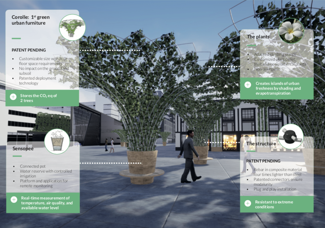 La technologie au service d’un monde plus vert ? C’est ce que propose la société française Urban Canopee avec une solution pour combattre les effets du réchauffement climatique en milieu urbain. Présentée sous une nouvelle forme de mobilier urbain, la solution d’Urban Canopee est constituée de pots connectés (Sensopee) et équipés d’un ensemble de tuteurs en corolles (d’où le nom de cette partie : Corolle), qui vont permettre de planter des végétaux, le tout pouvant former des allées ombragées, recouvertes de verdure. Urban Canopee représente la région Ile de France au CES, alors peut-être allons nous découvrir de telles aménagements sous peu en région parisienne.