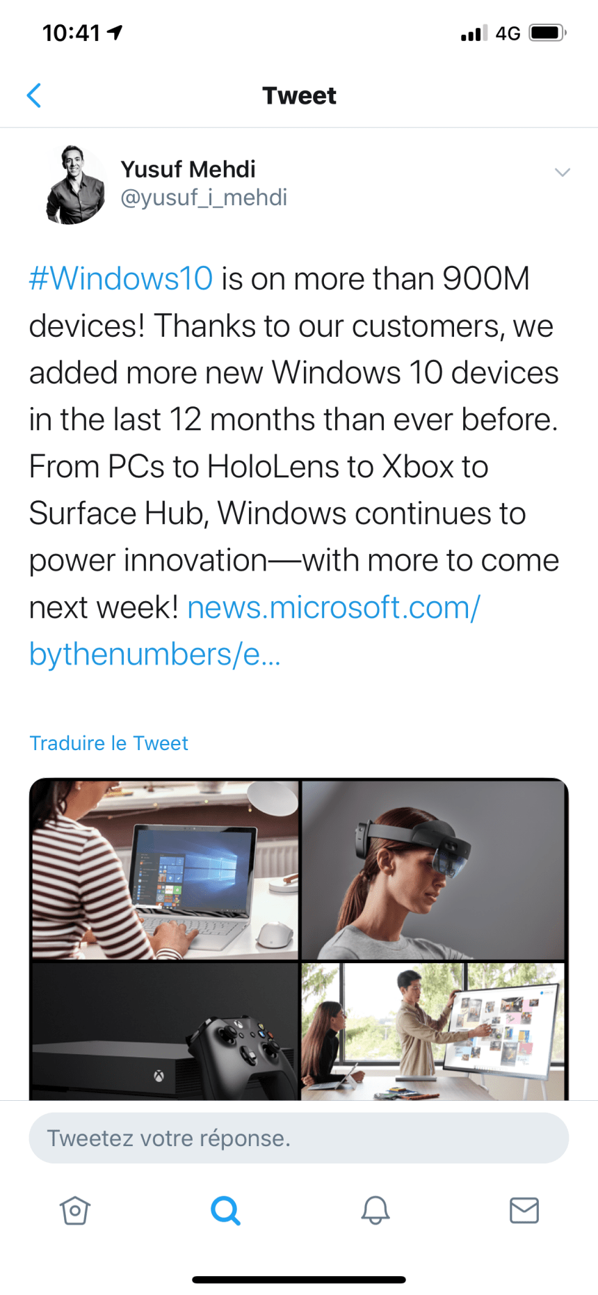MICROSOFT vient de mettre à jour le nombre d’appareils installés avec Windows 10, par le biais d’un tweet de Yusuf Mehdi, Corporate Vice President of the Modern Life, Search and Devices Group. Le chiffre communiqué à l’automne 2018 était de 700 millions. La barre symbolique du milliard d’appareils (que MICROSOFT visait initialement pour la mi 2018) s’approche donc, et pourrait être atteinte d’ici le premier trimestre 2020.