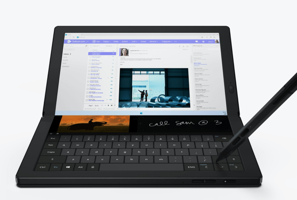 Nous devrions durant les jours qui viennent voir de nombreux autres ordinateurs de cette sorte avec un écran pliable, ou comme le NEO de Microsoft dotés de 2 écrans. Le marché dira si l’un de ces facteurs de forme s’imposera sur le marché.