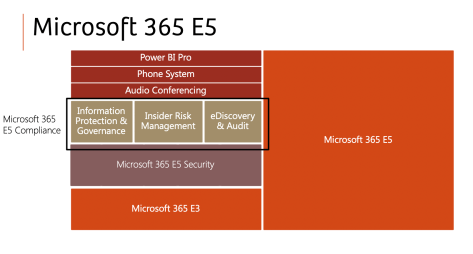 Ces 3 mini suites combinées constituent la nouvelle version de l’offre Microsoft 365 E5 Compliance, qui fait elle-même partie du plan Microsoft 365 E5. C’est donc une histoire de poupée russe :).