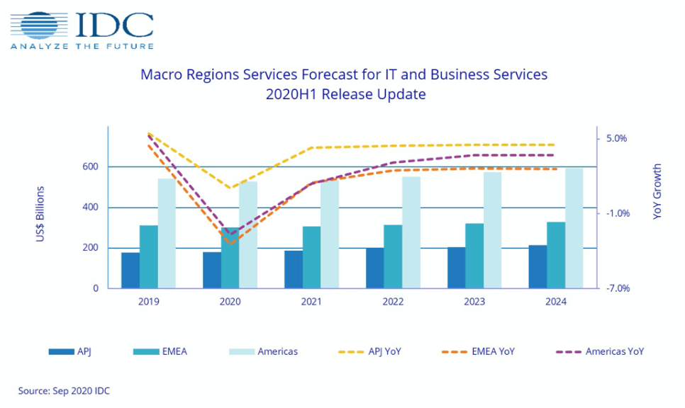 Le chiffre d’affaires mondial du secteur des services informatiques a diminué de 1,9 % au cours du premier semestre 2020 par rapport à la même période l’année dernière, selon les statistiques actualisées annoncées cette semaine par le cabinet de recherche et de conseil IDC. Sans surprise, la baisse des revenus a été influencée par la réaction à la pandémie et cette tendance devrait se poursuivre tout au long de cette année. IDC prévoit une baisse de 2,3 % des revenus des services informatiques pour l’ensemble de l’année. Alors oui cette baisse est finalement très faible, au regard d’autres secteurs ! Il suffit de regarder des domaines d’activités tels que l’aviation ou le tourisme par exemple…