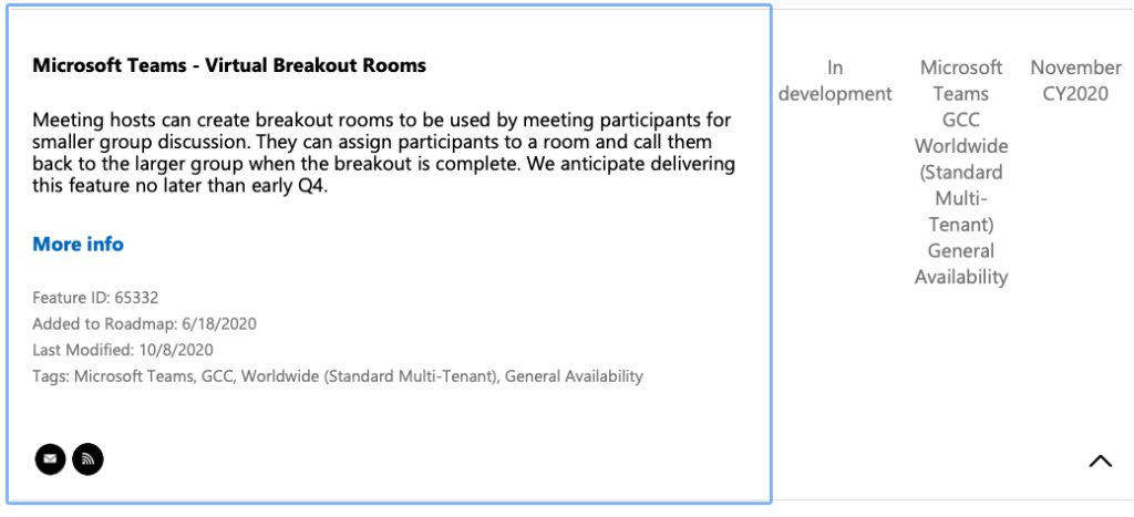 Teams va dans le courant de la seconde moitié de novembre se doter d’une fonction demandée et déjà présente chez les concurrents (Zoom en particulier) : les Breakout rooms. Il s’agit de permettre à un organisateur de meeting Teams de créer des sous-réunions Teams que les participants du meeting pourront utiliser pour des discussions en petits groupes. Sans cette capacité, il fallait créer autant de salles de réunions Teams que de sous-groupe (plus la réunion principale), et donc gérer en parallèle toutes ces sessions, sans aucune intégration.