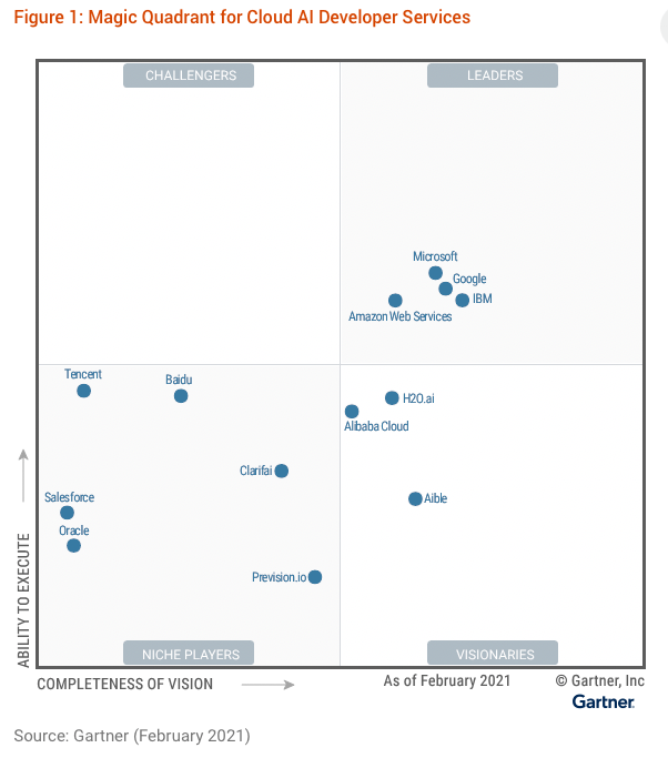 Edition 2021 du Quadrant MAgique de Gartner sur les services IA hébergés