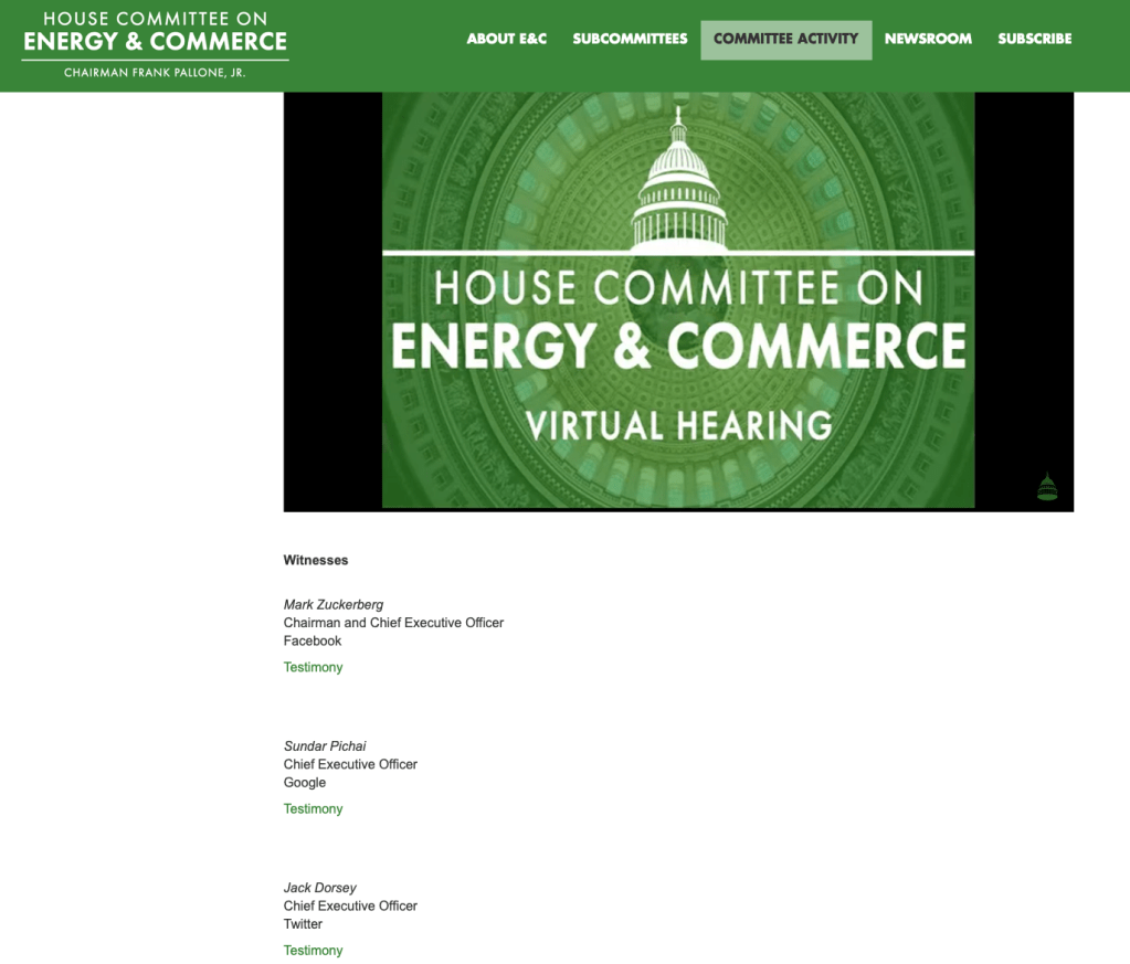 Convoqués comme témoins hier devant une commission parlementaire américaine intitulée « Disinformation Nation: Social Media’s Role In Promoting Extremism And Misinformation« , Mark Zuckerberg (Facebook), Jack Dorsey (Twitter) et Sundar Pinchai (YouTube) ont tous refusé d’admettre que ce qui constitue le coeur de leur Business Model, l’engagement des utilisateurs, était un des principaux ressorts de la montée de la désinformation, de l’extrémisme et de la fragmentation de l’opinion en communautés imperméables à autrui et à la réalité.