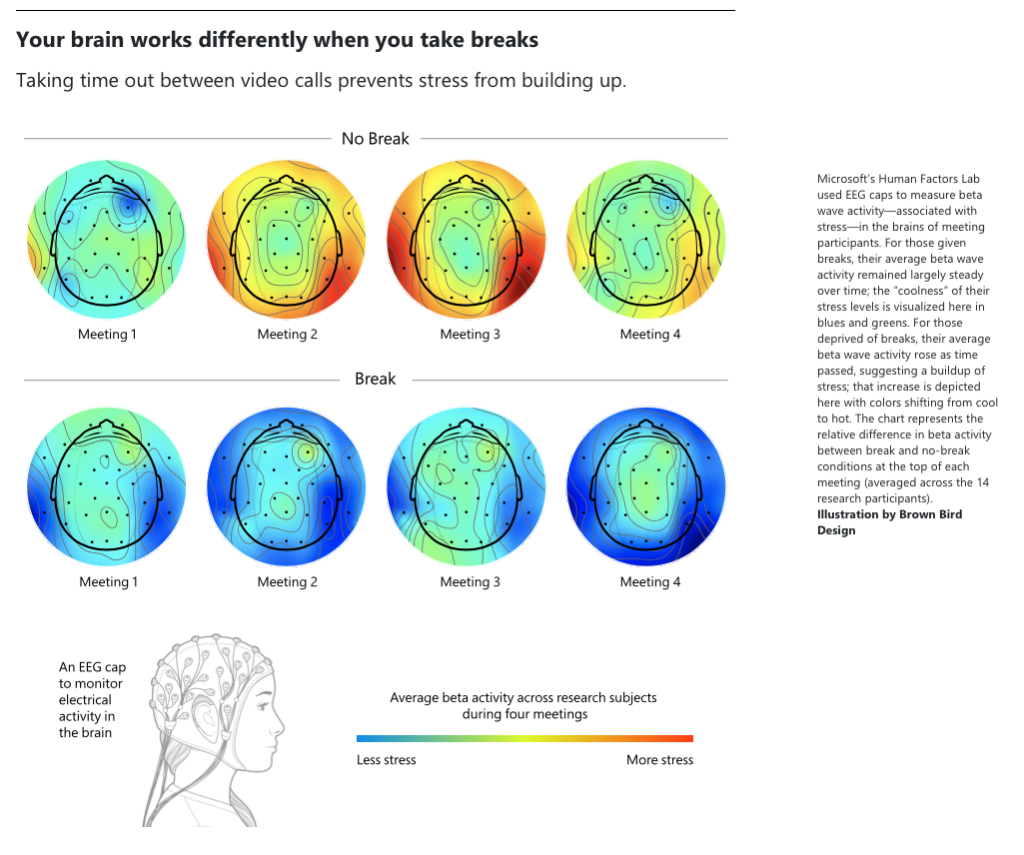 Microsoft constate ce phénomène d’amplification du stress lié à cet enchainement de meetings dans une nouvelle étude publiée hier. Cette étude s’inscrit dans le cadre de l’étude annuelle Work Trend Index dont nous évoquions la publication du rapport 2021 il y a quelques jours sur ce blog (voir ci dessous), et qui présente le concept de « hybrid work ».