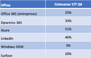 Si Microsoft ne communique toujours pas sur le montant en dollars de son activité Azure, il faut noter que celle-ci représente un part très notable de sa division Intelligent Cloud (CA Q2 2021 = 17,4 milliards de $), et que sa croissance est sur ce trimestre supérieure à celle affichée par AWS ou Google Cloud.