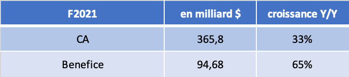 Pour Apple, ce trimestre (juillet à septembre 2021) constitue le 4ème et dernier trimestre de son année fiscale 2021. L’entreprise a donc publié, outre ses résultats trimestriels, ceux de toute son année 2021, pulvérisant une nouvelle fois ses records :