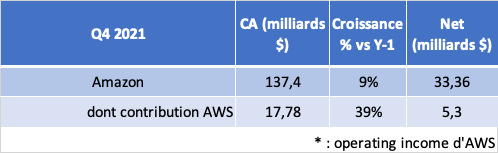 La publication des résultats trimestriels s’est donc terminée hier 3 février avec ceux d’Amazon. Le moment est donc venu pour une petit récap.