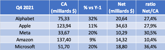Fin de la pluie des résultats Q4 2021 pour les Gafams