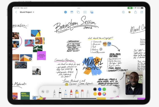Apple présente son outil avant tout pour offrir aux Mac, iPhone et surtout iPad une nouvelle façon de travailler pour les sessions de brainstorming, permettant à plusieurs utilisateurs de collaborer simultanément sur des documents et des fichiers partagés. Avec au programme bien sûr, l’intégration avec FaceTime.