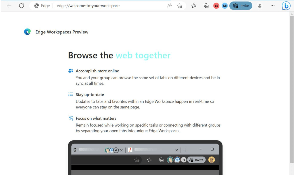 Lors de la dernier conférence Ignite (en octobre dernier), Microsoft avait dévoilé un nouvel outil de « navigation collaborative » dans Edge baptisé Workspaces. Il permet d’organiser des projets et des ensembles d’onglets dans des fenêtres de navigation distinctes, personnalisables et partageables. Il est ensuite envoyer des liens à d’autres personnes et les inviter à rejoindre chaque espace de travail. Initialement, cette fonctionnalité n’était disponible que pour les entreprises, aujourd’hui tout le monde peut la tester depuis la version 111.0.1661.51 ou plus récente. La preview limite l’accès à cinq personnes, et Microsoft promet d’étendre les essais à un plus grand nombre d’utilisateurs au cours du printemps.