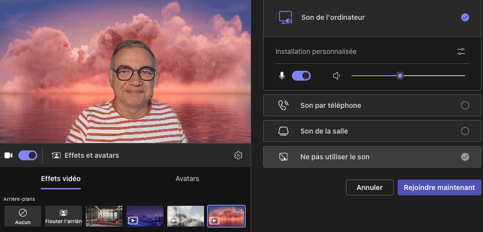 Sans surprise cela consomme des ressources… Microsoft précise qu’en plus de ne pouvoir choisir que parmi certains arrière-plans prédéfinis, l’option d’animation nécessitera au moins 8 Go de RAM sur votre appareil pour fonctionner, ainsi qu’un PC doté d’un processeur avec « 4 processeurs logiques ». Si votre PC est soumis à une charge de travail supérieure à la normale, l’ajout de filtres vidéo à l’animation d’arrière-plan lors d’une réunion Teams peut ralentir l’animation dynamique.