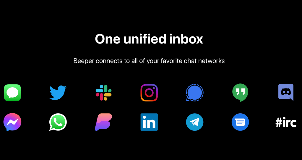 Si néanmoins vous désirez disposer non seulement d’iMessage sur Android mais aussi un client de messagerie instantannée universel qui fonctionne sur iPhone, Android, MacOS et Windows, le projet Beeper commence maintenant à devenir très crédible. Il permet de fédérer non seulement iMessage, mais aussi WhatsApp, Messenger, Signal, Telegram, la messagerie de Linkedin, Slack, etc.