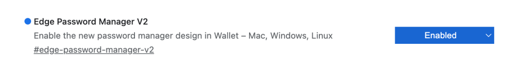 - Ouvrez edge://flags, trouvez le drapeau « Edge Password Manager V2 » et activez-le. Redémarrez le navigateur.