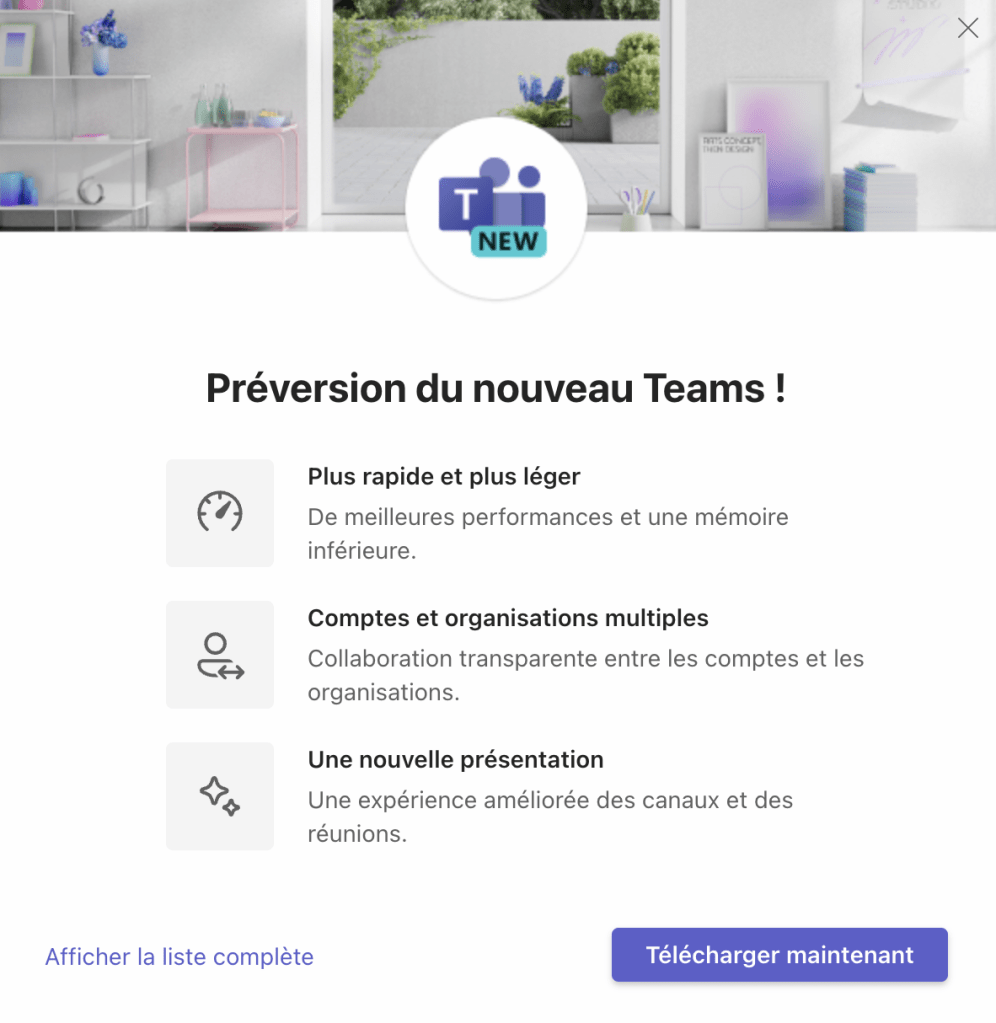 Cette nouvelle application Teams a été présentée par l’entreprise comme une refonte complète. Elle affirme que la nouvelle application se lance deux fois plus vite que l’ancienne, et que les gens peuvent entrer en réunion deux fois plus rapidement. Elle est également censée utiliser moins de mémoire et d’espace disque. Parallèlement, la nouvelle application Teams dispose d’une interface utilisateur simplifiée avec davantage d’options de personnalisation.