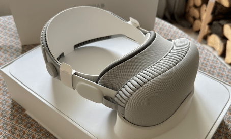 C’est clairement un des points faibles de ce système : pas très confortable. Certes il y a du mieux par rapport à l’usage d’un Quest avec des lunettes de vue par exemple, mais le casque est lourd et le bandeau arrière certes esthétique n’est pas, pour moi, la solution la plus adaptée si l’on veut porter ce casque plus d’une heure. La solution à double lanière (fourni avec) est moins pratique mais sans beaucoup plus adaptée à de de plus longues séances d’utilisation sans être parfaite.