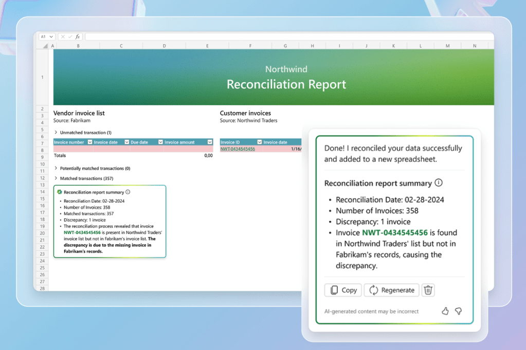 Microsoft Copilot for Finance est conçu pour faciliter le travail d’analyse financière en extrayant des données de « sources de données financières existantes ». Les sources de données possibles sont « les systèmes traditionnels de planification des ressources de l’entreprise (ERP), tels que Microsoft Dynamics 365 et SAP, et fatalement le Microsoft Graph ». Cette version intègre Copilot for Microsoft 365. Par exemple, Copilot for Finance fonctionne avec Excel en particulier., L’un des cas d’utilisation de Copilot for Finance consiste à effectuer des analyses de variance dans Excel à l’aide d’invites textuelles. Il exploite les « comparaisons automatisées des structures de données » dans Excel pour garantir l’exactitude des données. Les données financières peuvent également être transformées en tableaux et graphiques.