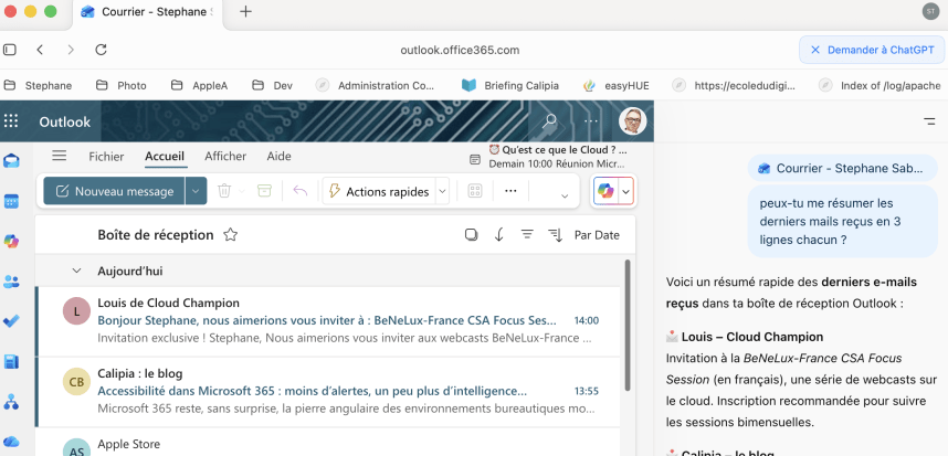- Synthétiser nos mails reçus ! (si l’on a ouvert la version Web d’Outlook)
