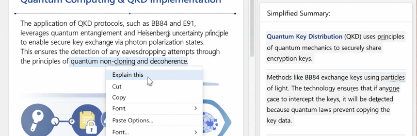 Et Microsoft insiste : ces résumés ne sont ni génériques ni hors-sujet. L’IA contextualise le texte à partir du reste de la présentation. En clair, il ne s’agit pas de définitions Wikipedia copiées-collées, mais bien d’un résumé intelligent du contexte immédiat.