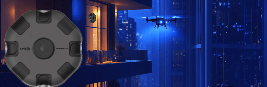 - Utilisation de technologies acoustiques de grade militaire pour surveiller en 360° l’espace aérien jusqu’à environ 500 m (≈ 1 500 ft) autour d’une maison ou d’un immeuble.
