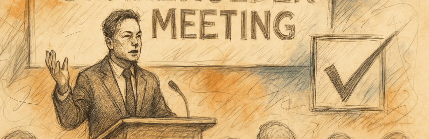 La gouvernance d’entreprise devrait incarner rigueur, redevabilité et alignement stratégique. Pourtant, le cas Tesla jette une lumière crue sur un rituel autrefois central : l’assemblée générale des actionnaires. Entre procédures dilatoires, décisions verrouillées à l’avance, et indifférence générale, l’AG de Tesla illustre une tendance qui devient de plus en plus habituelle : l’assemblé général est sans doute pour Elon Musk